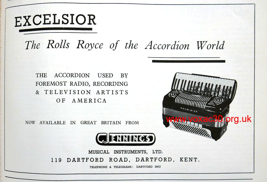 A detail from a Jennings advert in "Squeeze Box" magazine, May 1949. Jennings went on to take the magazine over, incorporating it in his own magazine "The Accordionist and Harmonica Player", based at 119 Dartford Road.