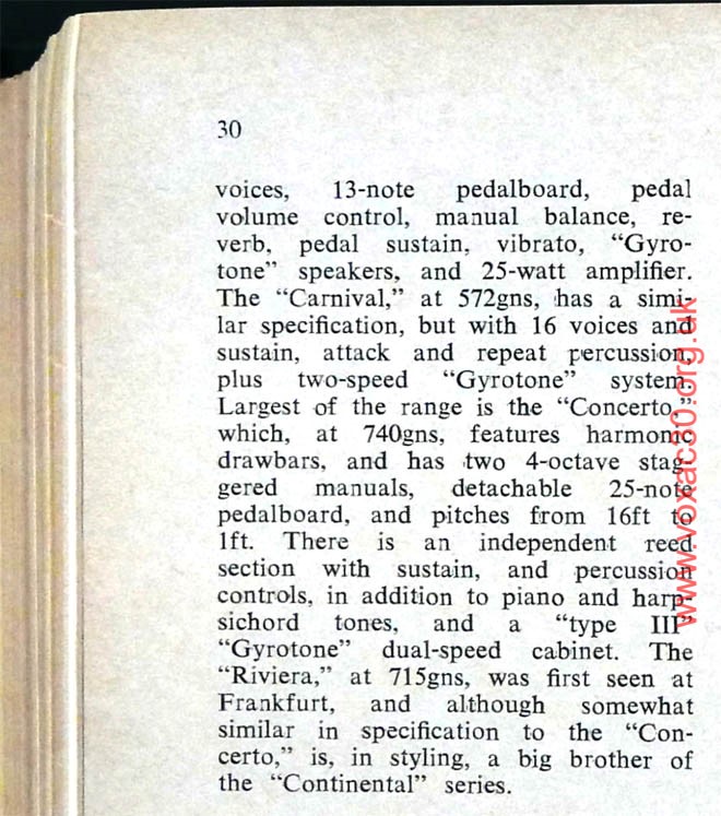 At the Fair, five new models were unveiled: the Super Continental II, and four console organs: the Casino, Carousel, Carnival, and Concerto, all likely to have been based on Thomas Organ models.