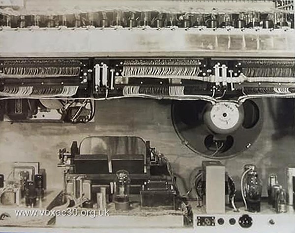 An early J50 organ, c. 1954, detail from a photo by Derek Underdown, a Goodmans Audiom in place. Audioms are likely to have been used also in the Jennings extension speaker cabinets - termed by Derek and Tom "Tone Cabinets".