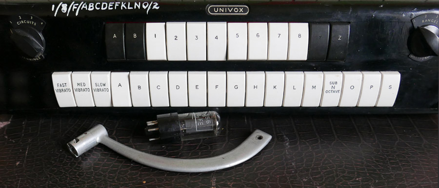 Serial numbers began at 100, so this is the 83rd Univox J10 made, or at least made ready for sale, one of the earliest surviving known at present. Production proper, which began in mid 1954, proceeded at a fairly relaxed pace (certainly in comparison with the Univox J6). Serial number 182 is from early 1956.