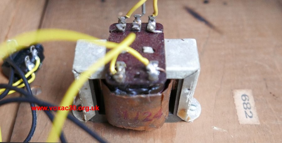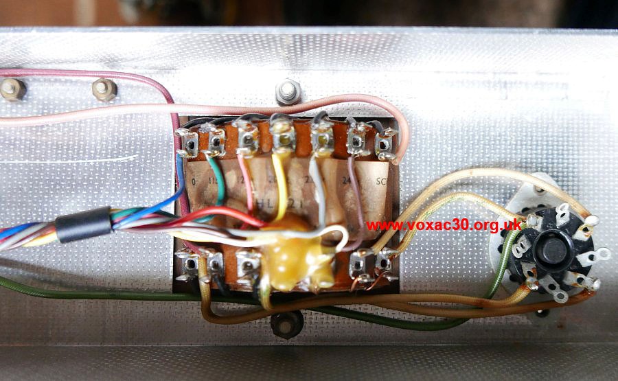 Mains transformer underside. Voltage taps for 115v, 125v, 200v, 220v, and 245v.