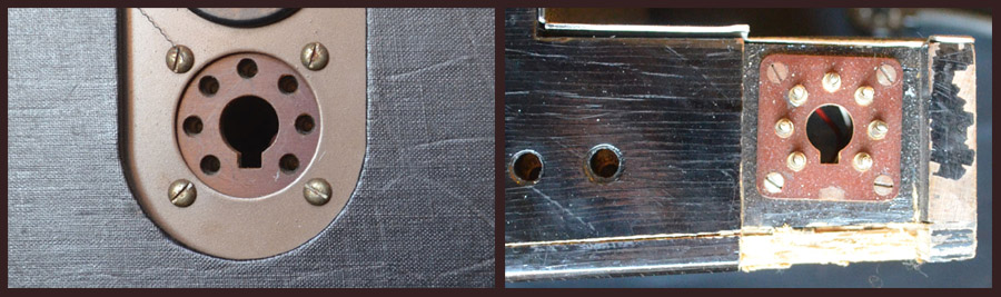 Sockets on the amplifier section (left), keyboard (right).