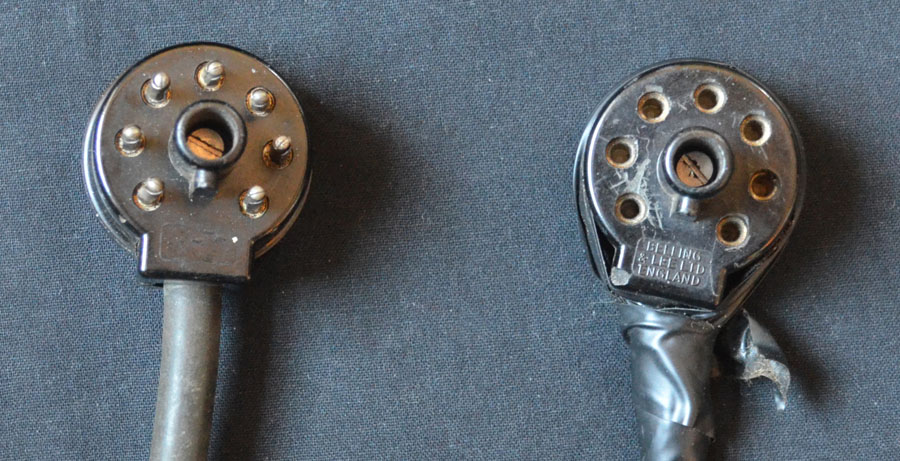 Cable between amplifier and keyboard - male end for amplifier, female end for keyboard. Pin 7 (counting round from left to right) carries no connection.