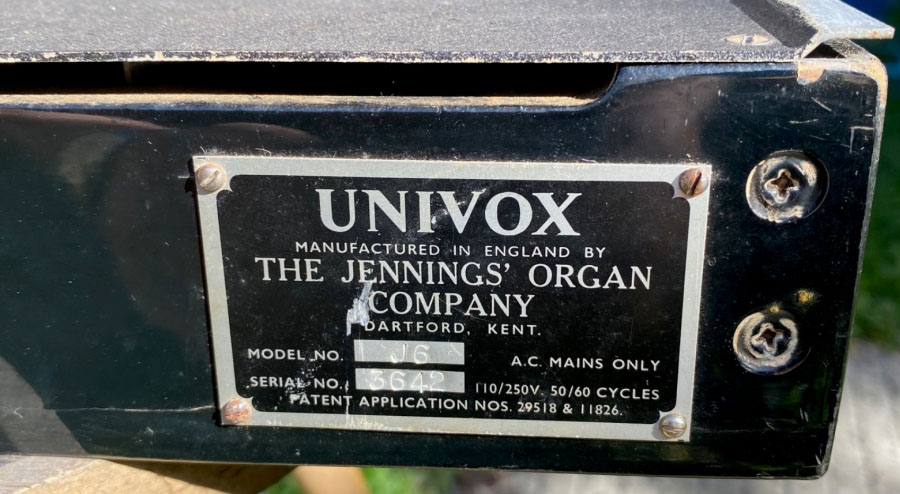 Jennings Univox J6 serial number 3642