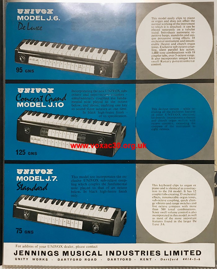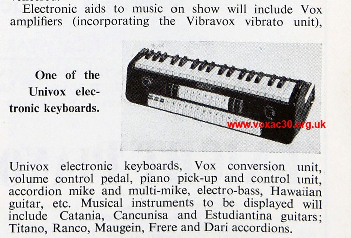 Mid November 1962. Note the possibility of reverb - keeping up with Selmer, which had offered the effect for the Clavioline earlier in the year.