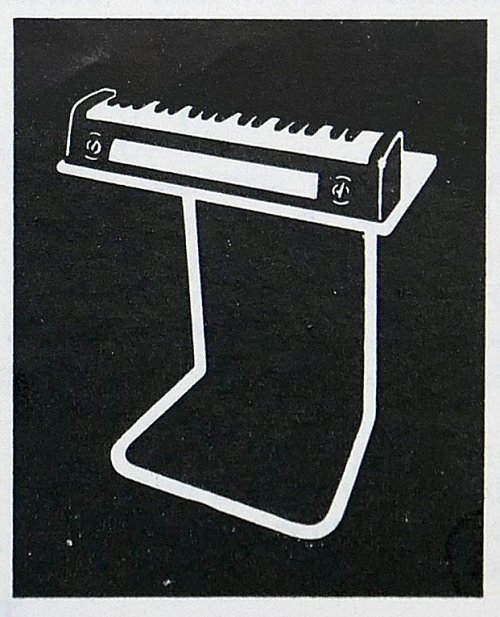 December 1956, a Univox J6 keyboard and gigster stand, part of a larger Jennings advert.