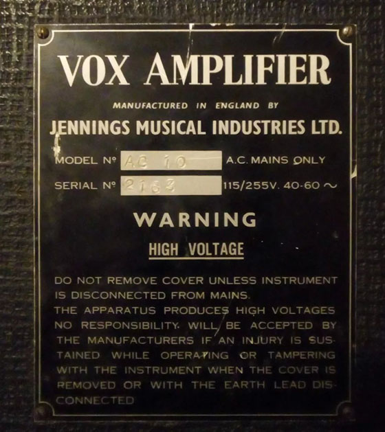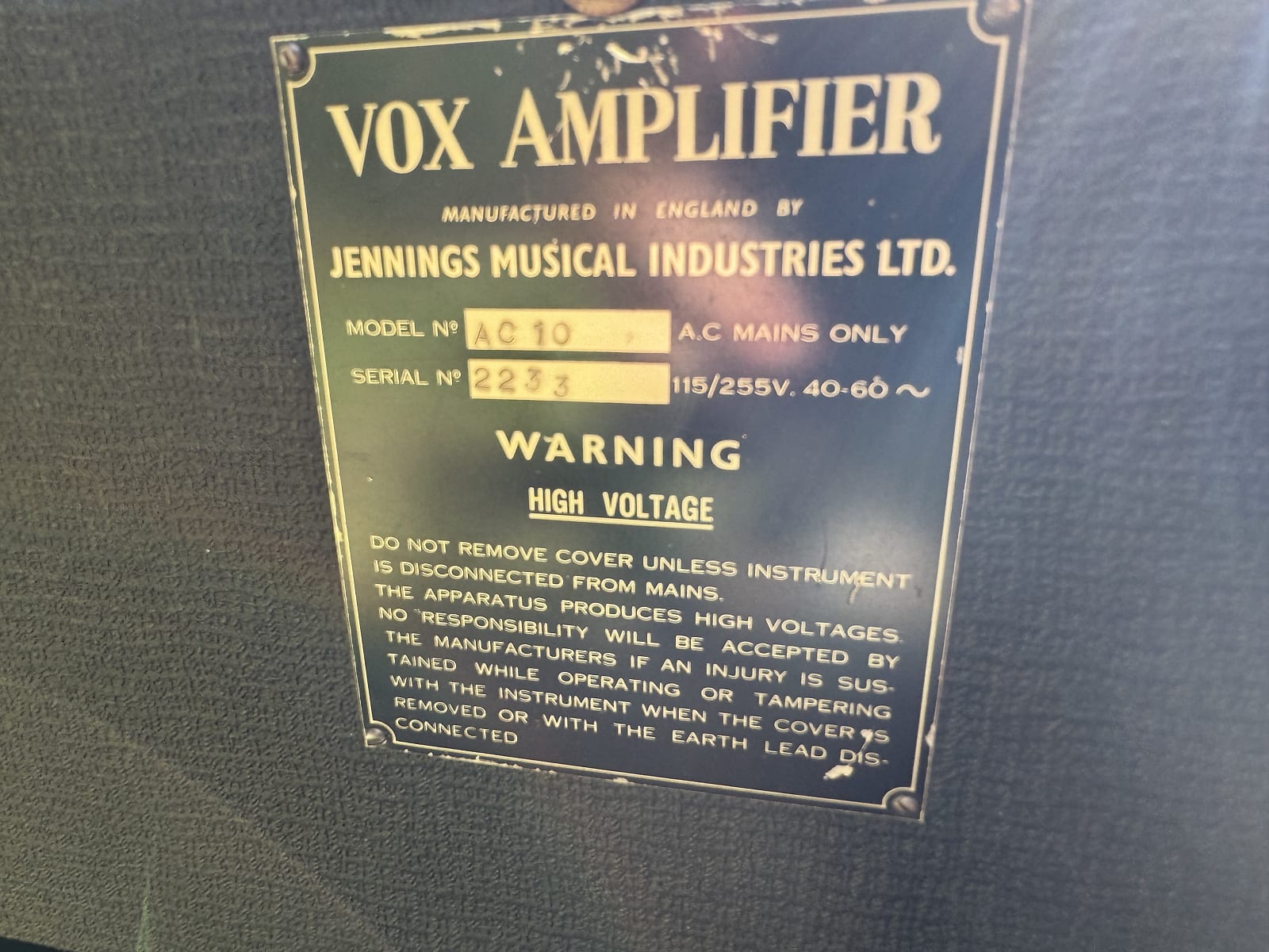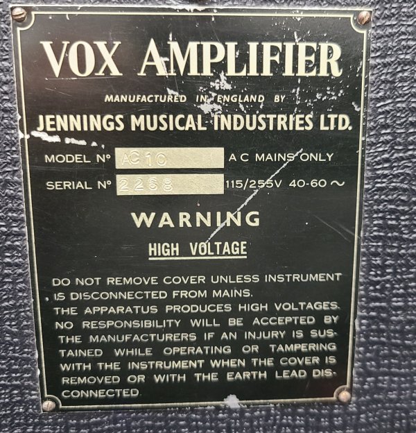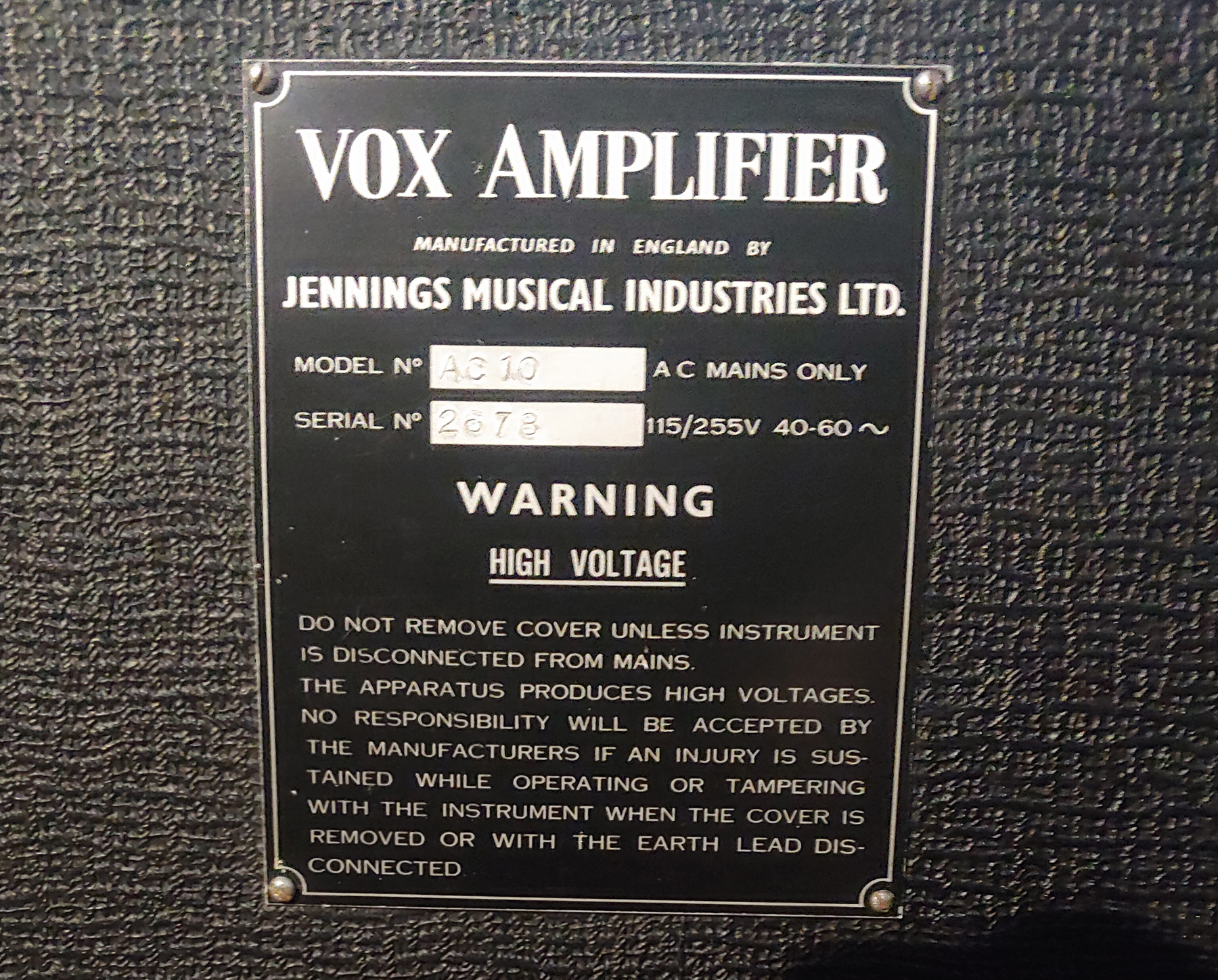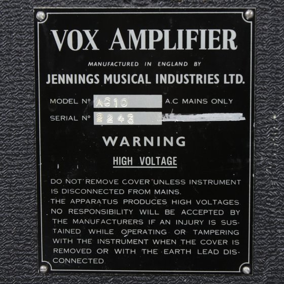 Another thing to bear in mind is the fire at the Vox Works in early December 1965. This destroyed around 40,000 items. Reg Clarke, JMI's General Sales Manager, only specifically mentioned AC100s waiting to be shipped to America, but it is likely that numbers of other JMI amplifiers - AC10s included - were lost too. Production moved during the clean-up operation to another building, but it is clear that orders, assembly, and despatch were badly affected for at least two months.