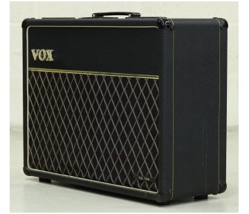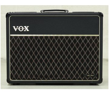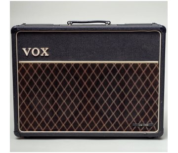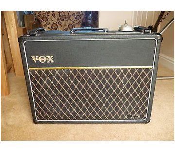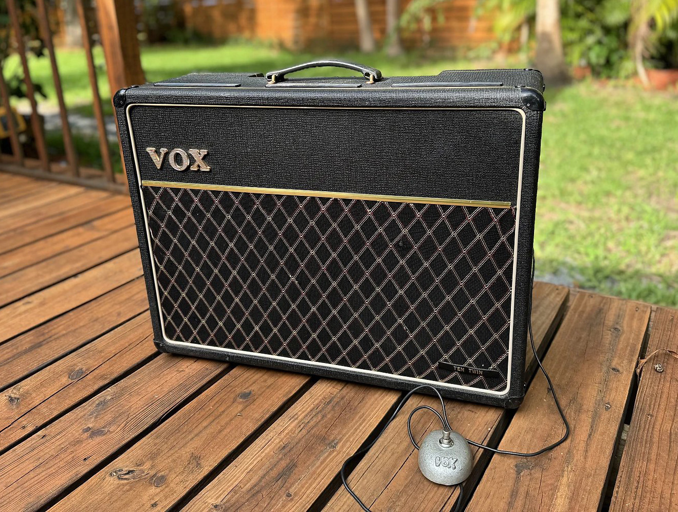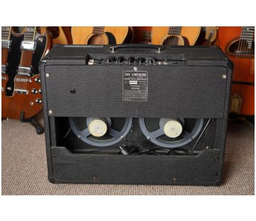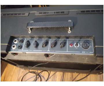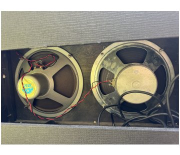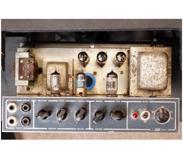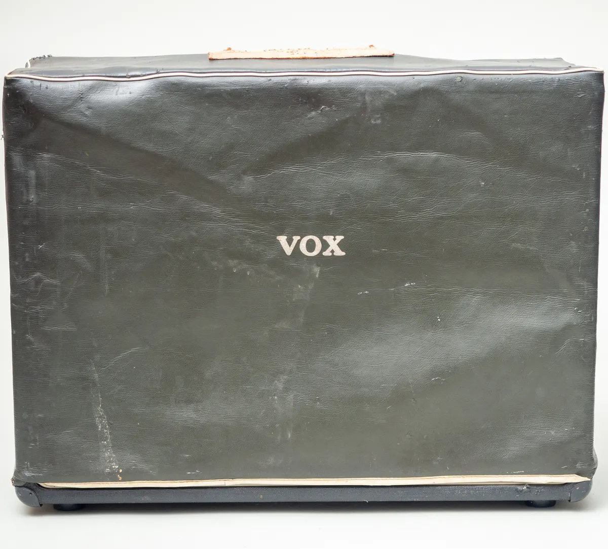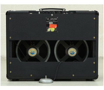 Copper panel - probably a repro. The original dome voltage selector is in place. No details of the electronics. The speakers are now Celestion 7721s with VOX labels, date code "WEL": "W" = 1965.