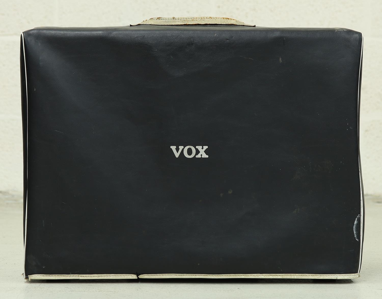 Chassis number 2417; Parmeko transformers. In the preamp, Mullard mustards with "B4N", "C4N", and "D4N" = second, third, and last quarters of 1964 for their manufacture. The original silver Elacs are present. The original dark green cover with VOX logo survives.