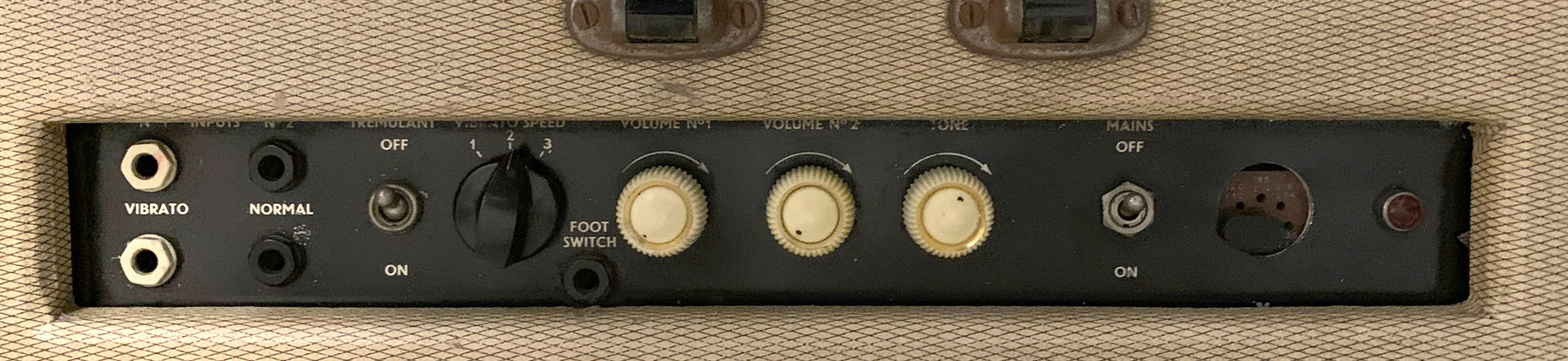 Jennings Univox J6, with "OFF" position. Vibrato on the AC1/15 and the stand-alone Vibravox unit was switched in and out via a footswitch.