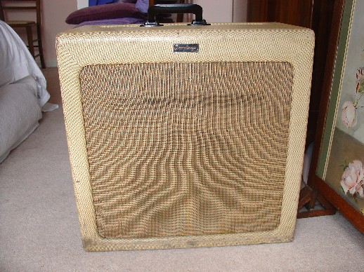 Southampton c. 1960, either an AC/15 or an AC/30, both of which were fitted occasionally by JMI with beige/tan grille cloth. Picture from this page.