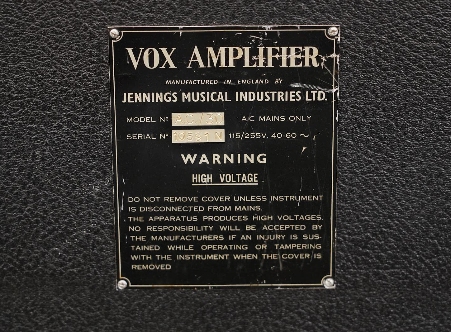 Vox contracted out the assembly of AC30 chassis to two companies: Burndept Electronics in Erith, and Westrex in Dollis Hill (north London). A sure sign of production by Burndept is the presence of a stamped serial number on the aluminium upright of the preamp chassis (normally on the right hand side a little way below the voltage selector):