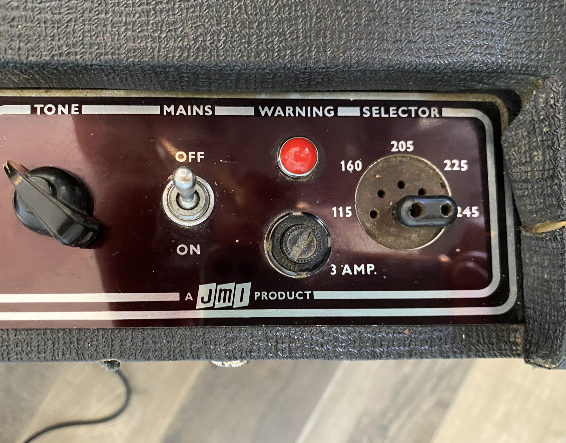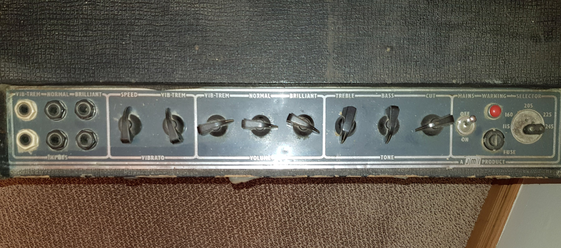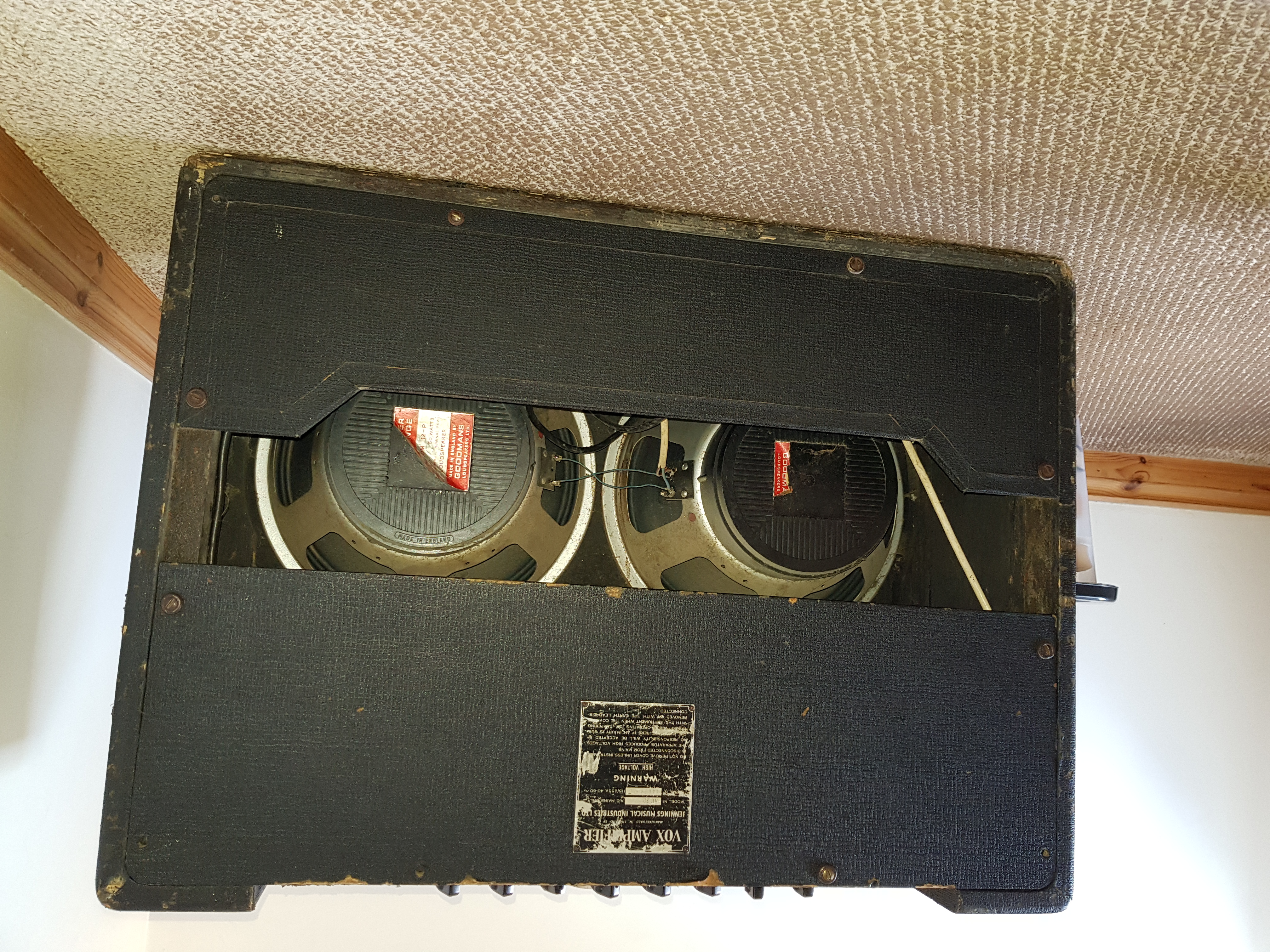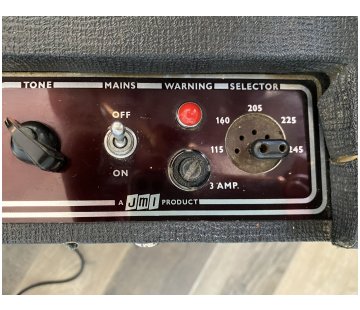 Brown grille cloth; grey control panel; link voltage selector. Original Celestion silvers still in place.