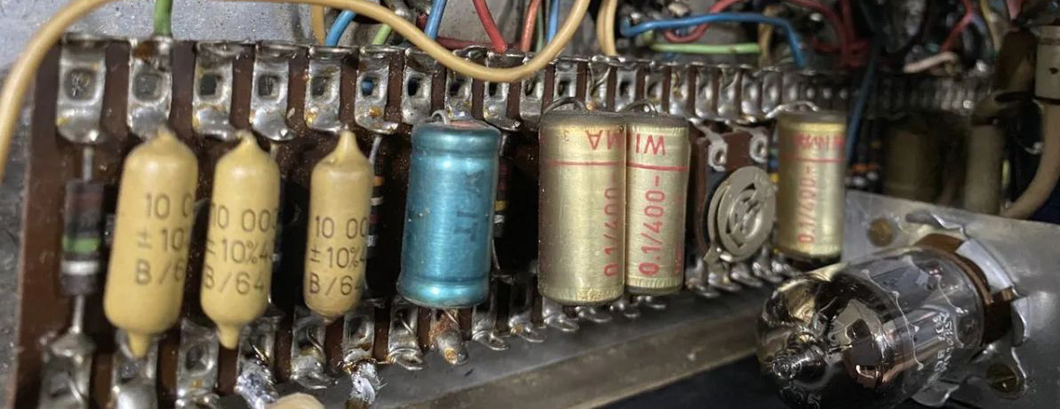 Albion transformers. A mix of WIMA and Mullard capacitors in the preamp. Celestion silvers, original wiring in place.