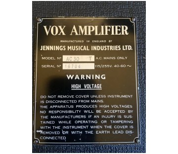 2024 / 2025 the amp is on sale in the USA (California). No clear shot of the serial number plate is given, but the holes left by the metal handles (now replaced) are shown in detail. The aluminium plate and jack socket are still present. The Celestion blues, presumably from the AC30 from which the chassis was taken, have 11th March 1964 date codes - "11CJ".