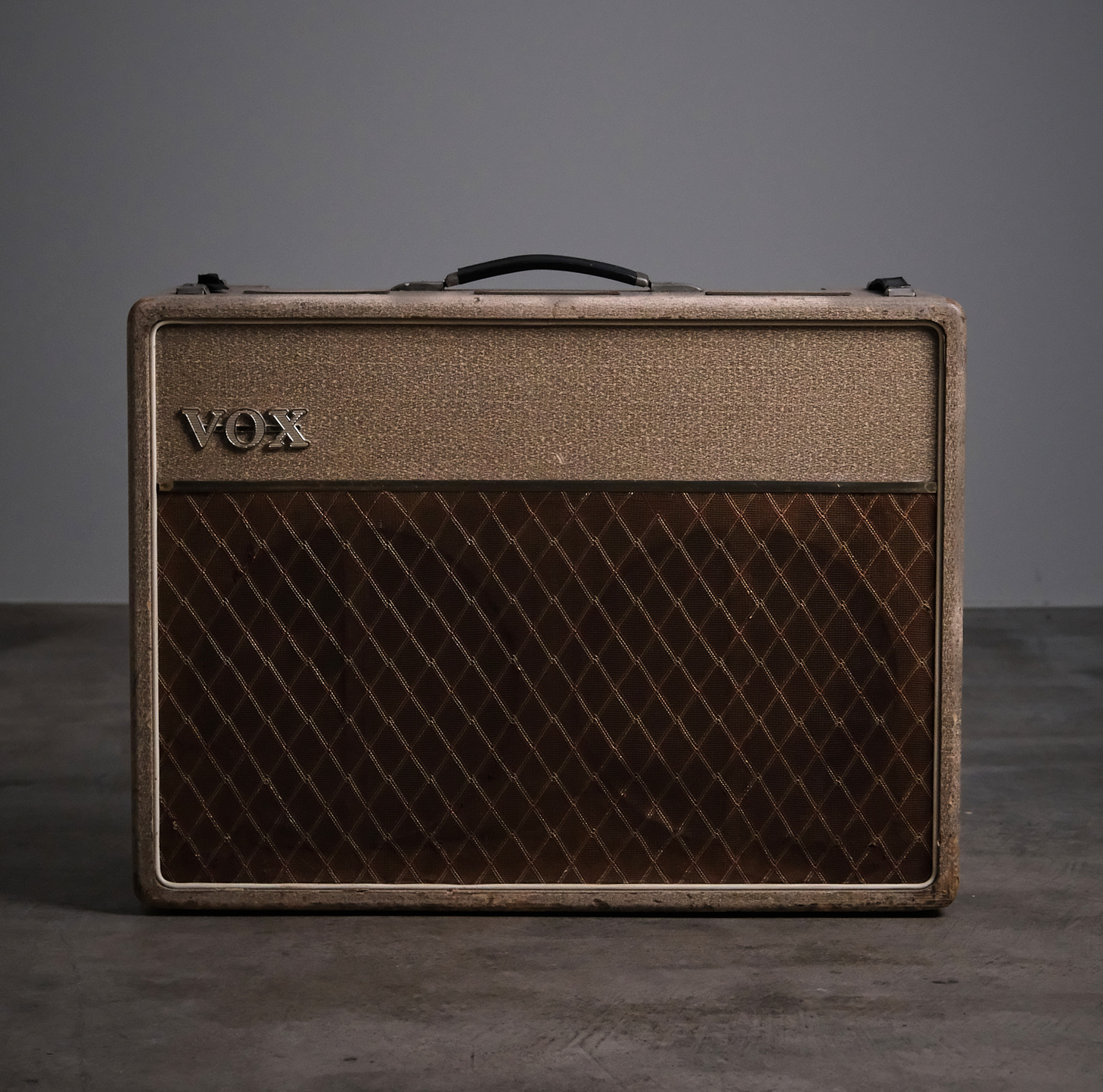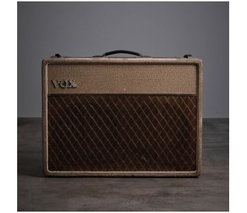 Westrex-made chassis. Fawn covering, split front. Belonged to Chas McDevitt. The amp arrived as the fulfilment of an order for AC15s placed in May 1960. But when the amplifiers (one for Shirley Douglas, number 4270 below), arrived some months later they were new AC30/4s. The amplifier was later recovered in black and a top boost module fitted. Existence noted by J. Elyea, p. 624.