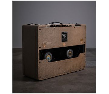 Chassis and speakers go together; the cabinet is significantly later. In all likelihood the original had a TV Front (those being relatively fragile and prone to damage), but it is just possible - hence its inclusion here - that it was an early split front. The speakers, as in the entry above, are hammertone/oyster T530/CT3757. The pink and yellow wiring is original. The long run is generally more typical of TV Front amps it should be said though.