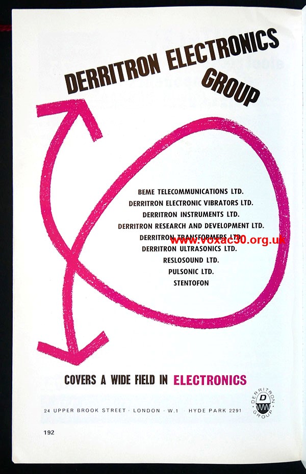 Derritron advert in an Electronic Components Trade Fair catalogue, late May 1963.