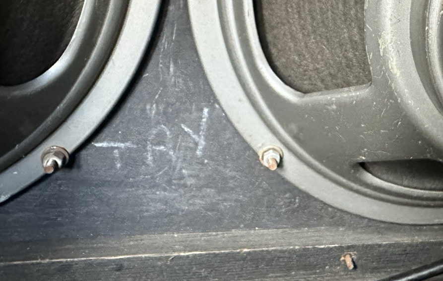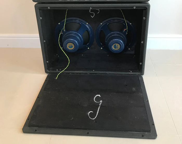 "GH" chalked in AC30 Super Reverb Twin serial number 8067, mid 1963; and in the 2x15" speaker cabinet accompanying AC100 serial number 177, mid 1964.