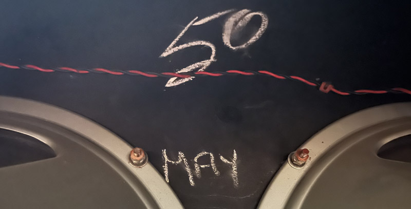 AC30 Super Twin serial number 3914, speaker cabinet. May chalked her name in a large number of Vox 7-series amplifier and speaker cabinets (1966-1967).