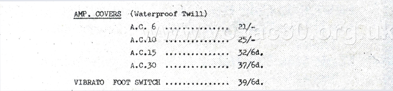 Below, an advert placed by Chas Foote in the music press, 20th August, 1960, just short of 64 years ago - unusual to find the footswitch ("control") of any Vox amp mentioned in shop adverts at this date.