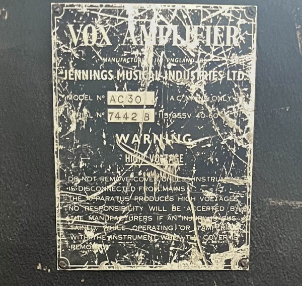 An entry coming shortly for AC30 Twin serial number 7442B. Thanks to Nick for the pictures.