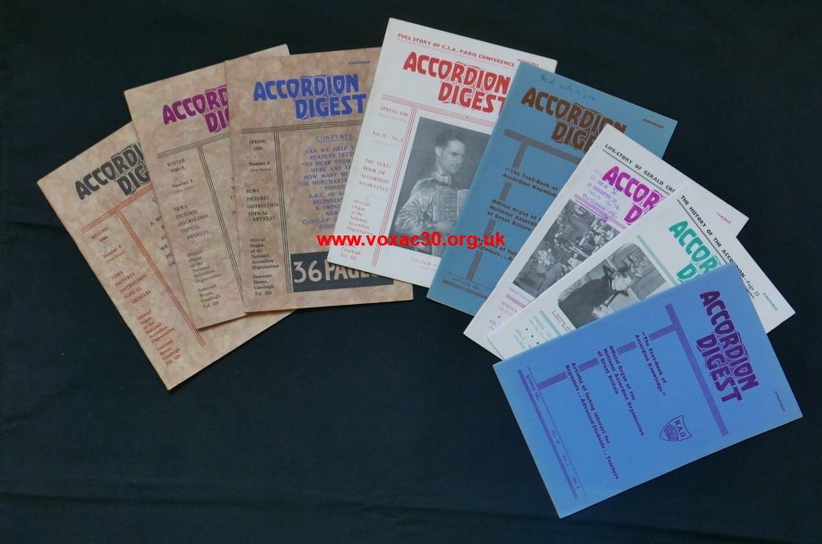 Published by the National Accordion Organisation, to which Tom belonged, eight issues of its quarterly "Accordion Digest" magazine. The earliest full-page Jennings adverts (known so far at any rate) were placed in these.