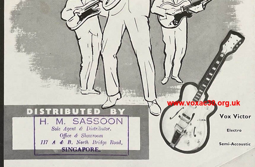 A detail from a copy of the "Choice of the Stars" fold-out catalogue of late 1962 sent out by Jennings to H.M.Sassoon in Singapore, probably the only Vox dealer in the Malay Peninsula at the time.