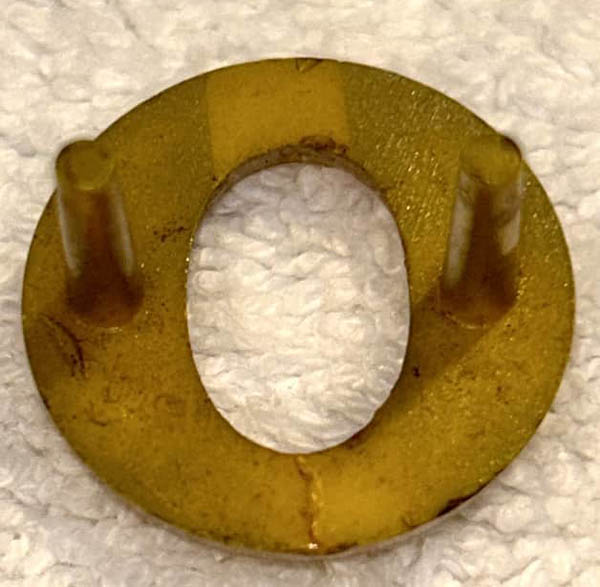Whether the letters always came from the supplier with lugs at back, as in the case of the "O" pictured below, is not known. The suspicion is that sometimes they were removed at Dartford Road, the plastic cemented directly to the grille cloth.