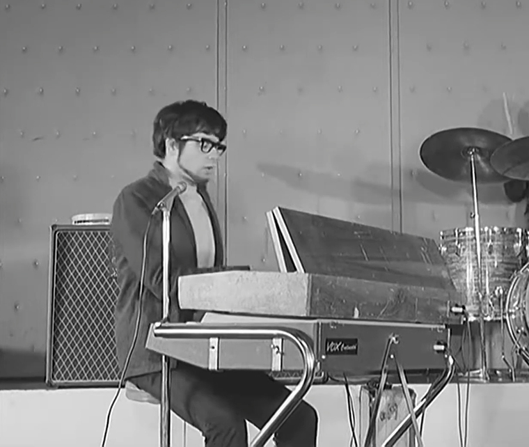 Normally seen with a later Continental with a sloping lid, below a small detail of Manfred Mann with an early one, square lid, music stand on top.