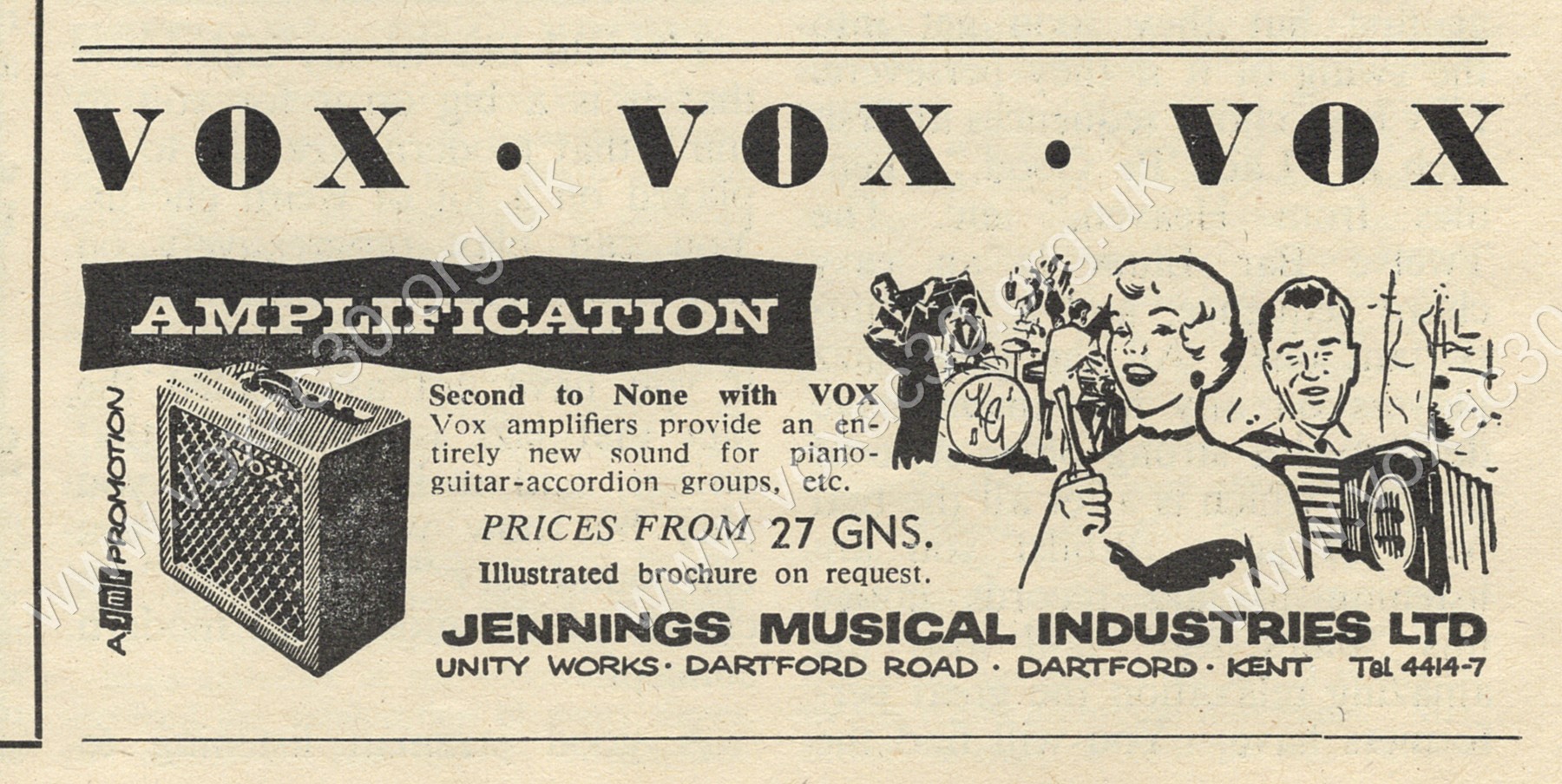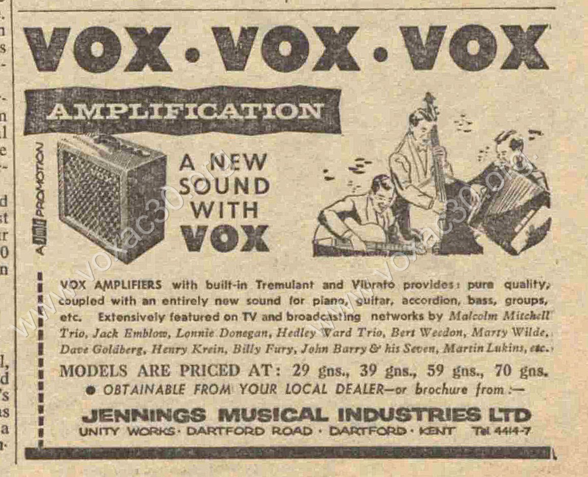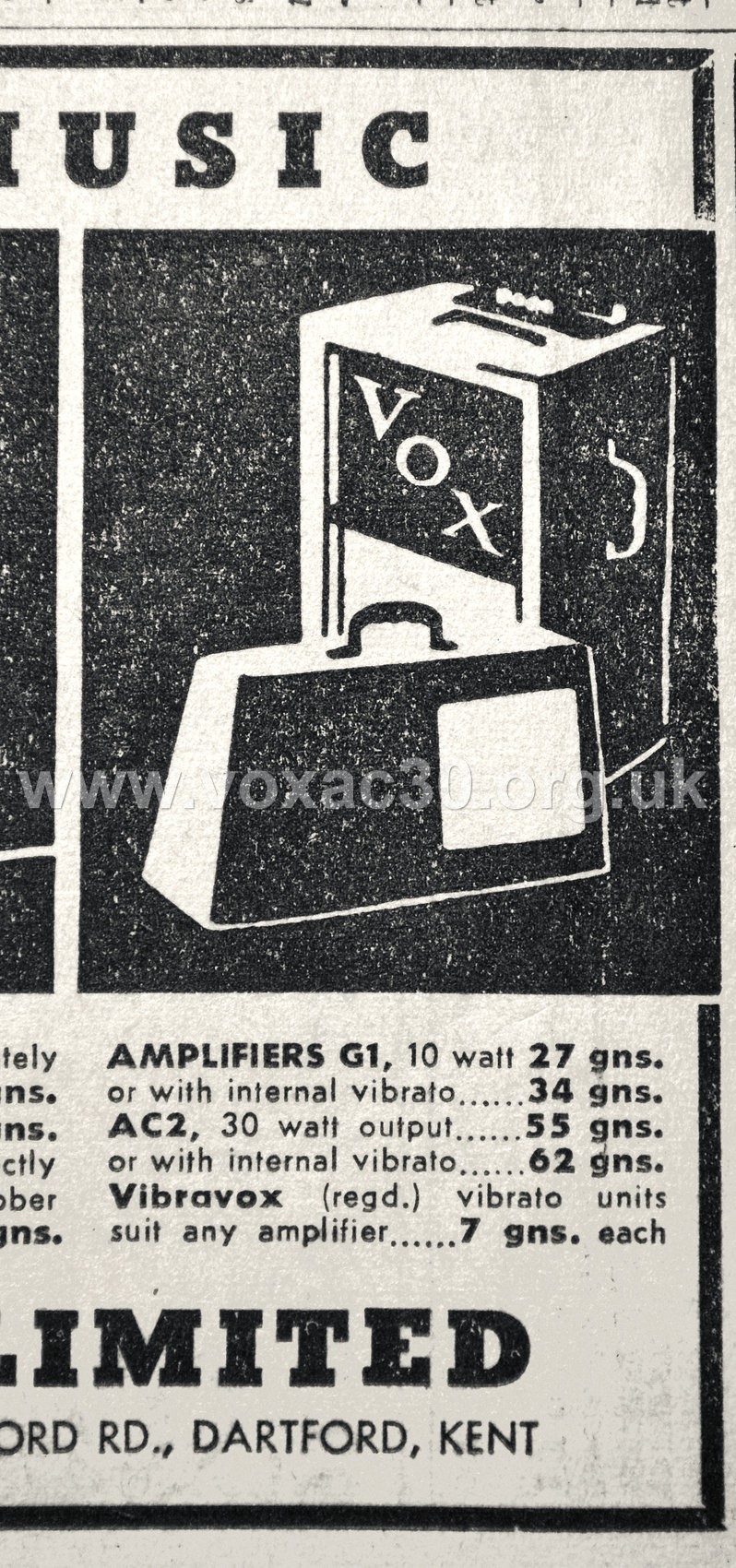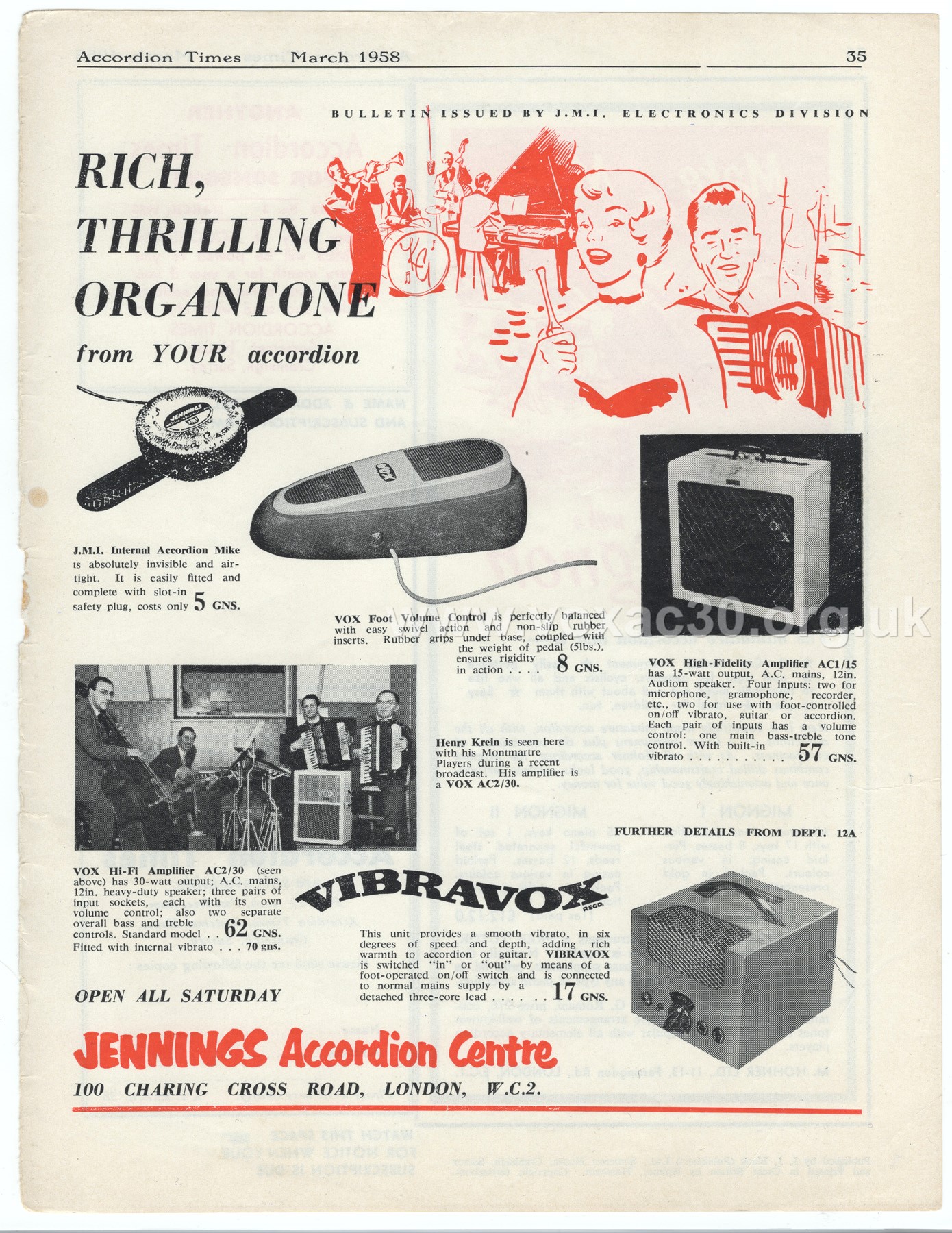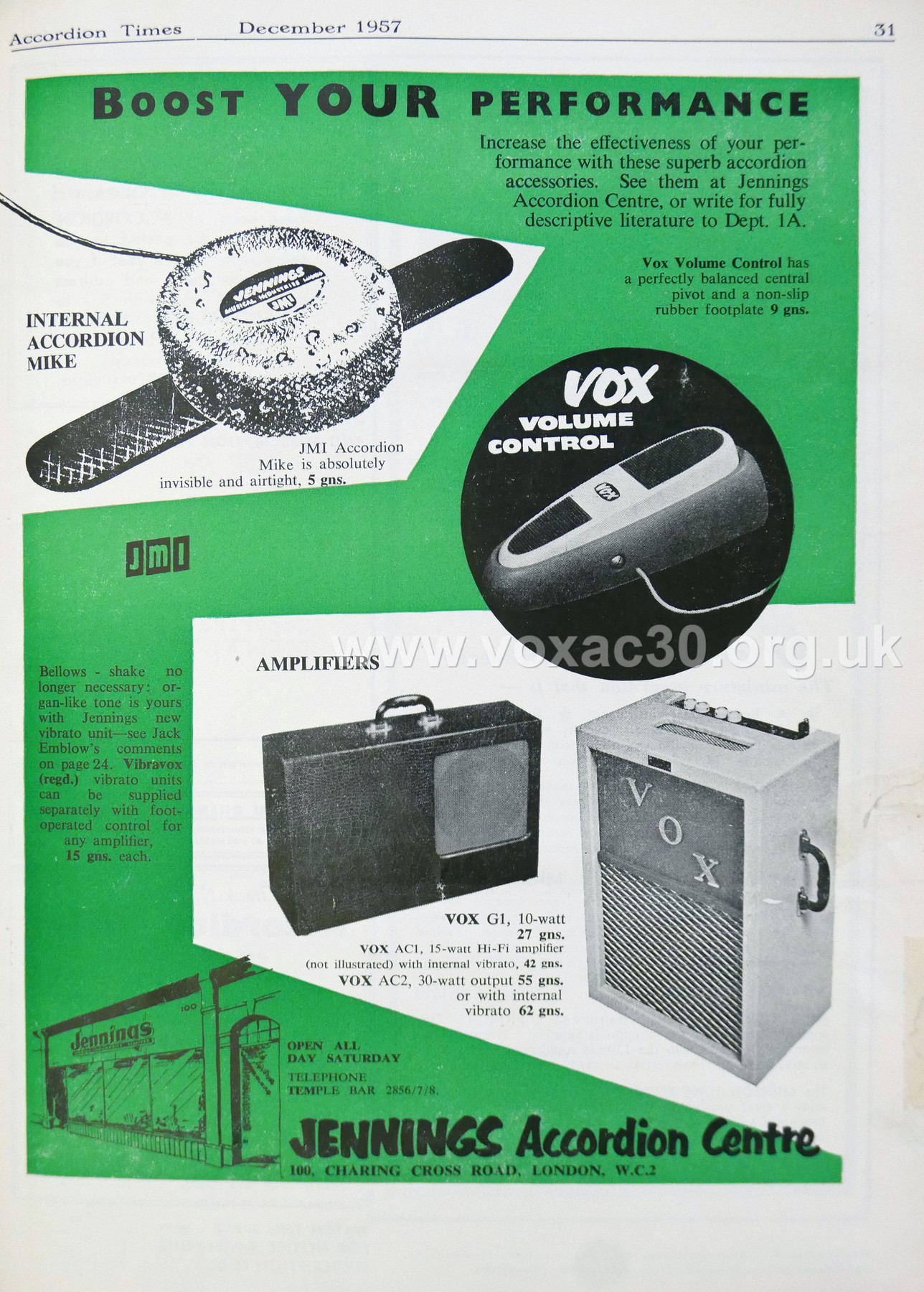 November 1957 - April 1958: The AC2/30 is advertised in "Melody Maker" and "Accordion Times".