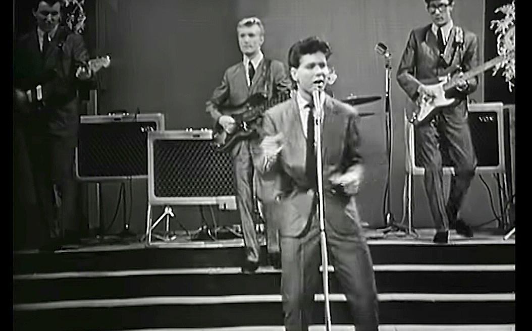 Screen-grabs from Cliff Richard's TV show - Cliff! (ATV) - 16th February, 1961, The Shadows with their TV Front AC30s. Note that Jet Harris's chrome stand is significantly smaller (lower) than the other two.