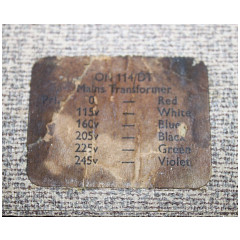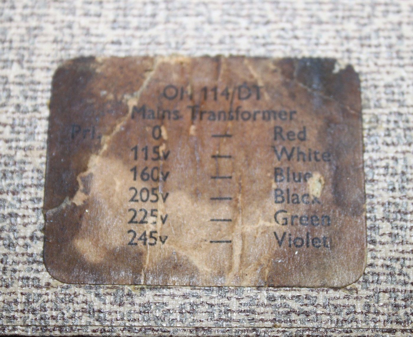 Picture no. 6 below, included with pictures of the cabinet, chassis and speakers, is of the Albion transformer label itemising the windings. Why is this later type of label found in the amp? The standard early type is this: