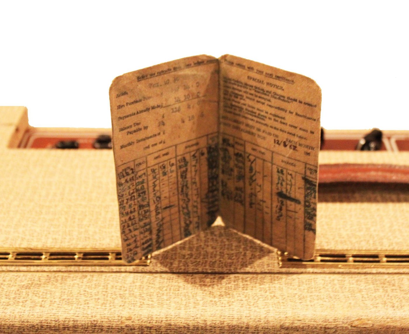 The hire purchase booklet, sadly out of focus, is difficult to read. Part of the card seems to have been wetted at some point. There is apparently however no note of the amplifier's serial number as would be usual. Why is this?