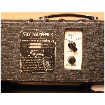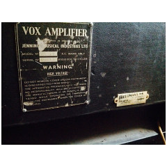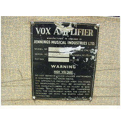 This amp has the same arrangement of VOX logo as the one represented in the thumbnail in "Melody Maker", 11th Jan. 1958 - on this page.