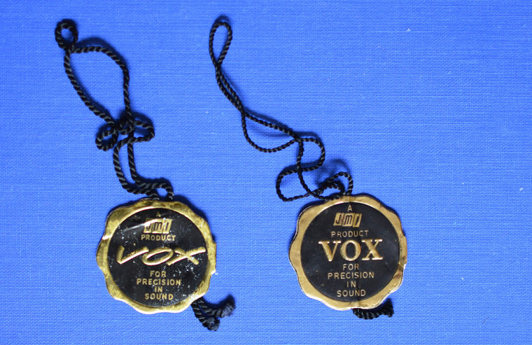Below (repeated from the entry for 12th December), an AC30 Super Twin head from late 1963 / early 1964 with its tag - the first style of JMI tag - affixed to the front grille cloth.