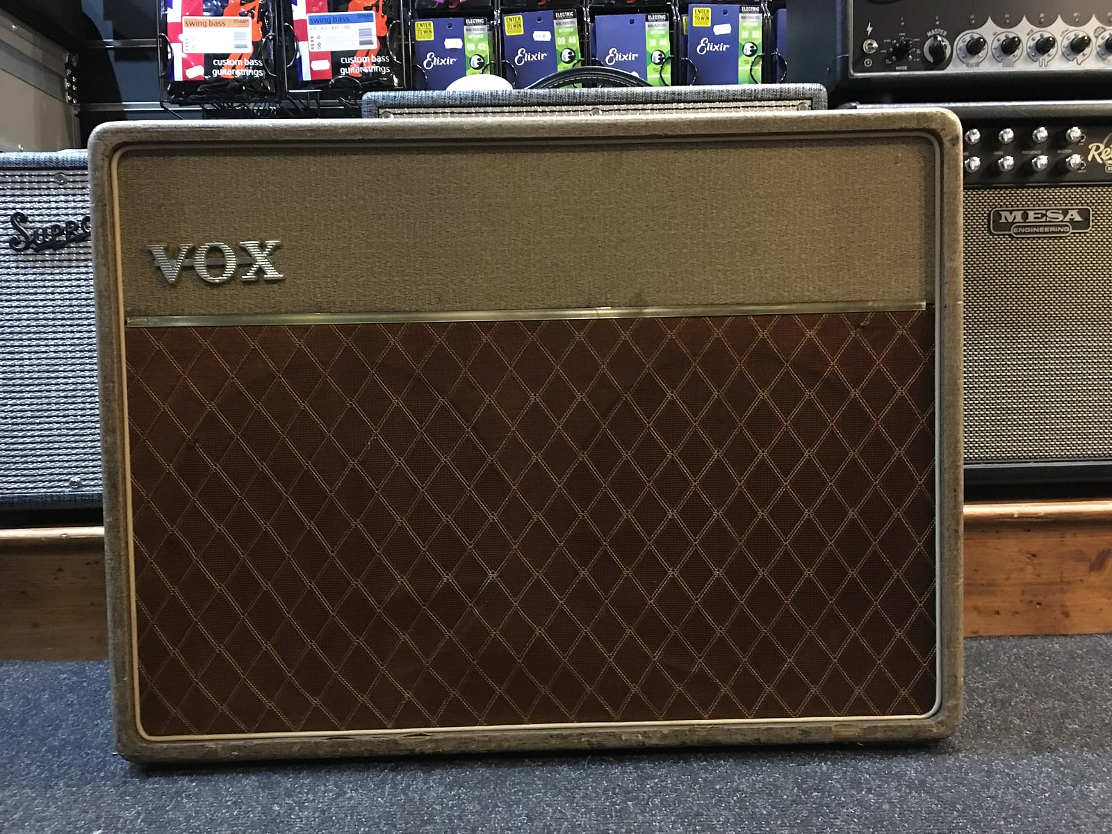 Currently on Reverb an AC30/4 in what may be its original box. No pictures at present of the electronics (or anything else). Note that the round knobs are of the type pictured in the JMI AC30 brochure of early 1961 (promoting the AC30/6). They are also found on AC15s of the same date.