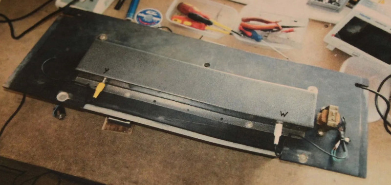 The reverb pan and driver transformer were mounted on the underside of the slider board.