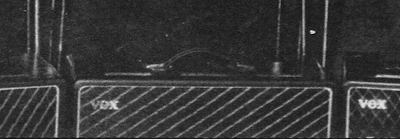 A detail of a picture of the Shadows' new black tolex split-front AC30s - NME Poll Winners Concert, 5th March, 1961, Empire Pool, Wembley. Note that Jet Harris still has his low stand, issued by JMI with the Shadows' TV front amps in late 1960: