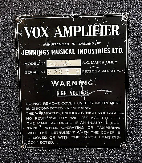 1964 was a heroic year for JMI - around 8000 AC30s produced - serial numbers in the 10000s through to the 17000s. Remember that during the year Super Twins came to have a numerical sequence of their own.