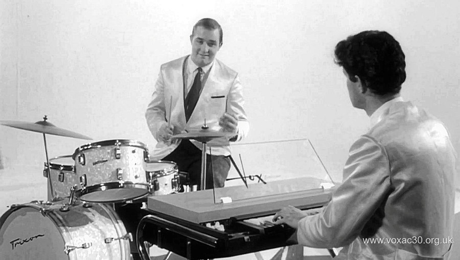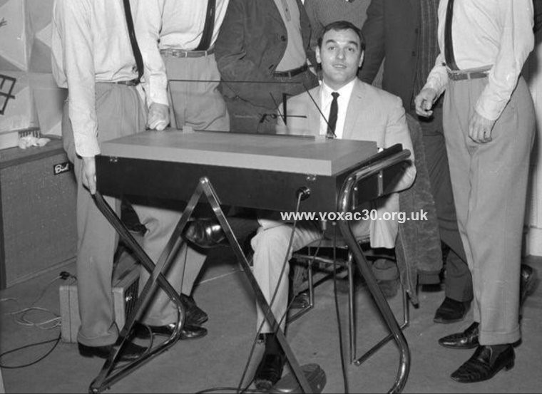 The poster behind Preston advertises a forthcoming appearance by The Hollies on 24th November '64. Other pictures show that the lid of the organ was not drilled for a music stand.