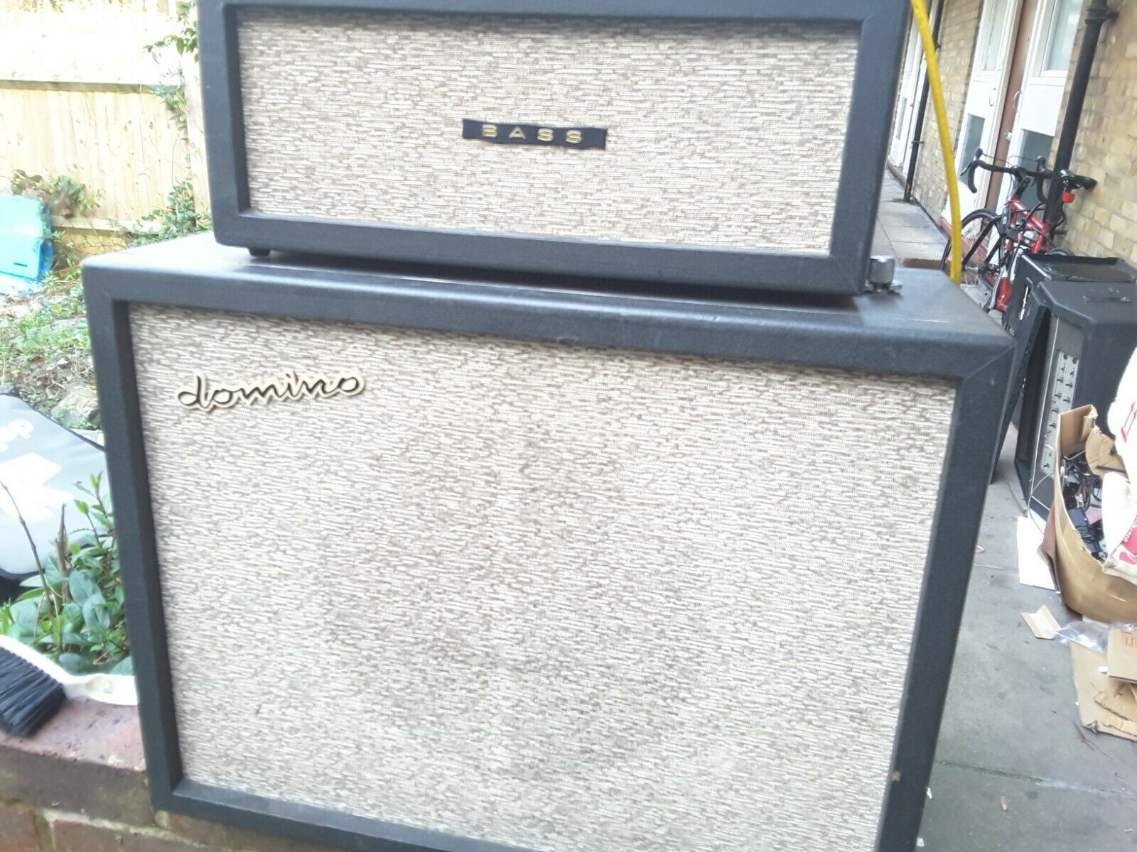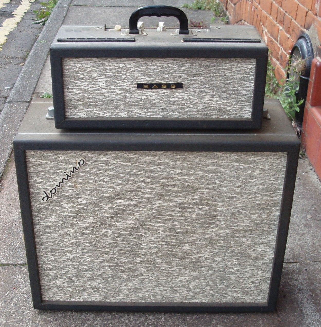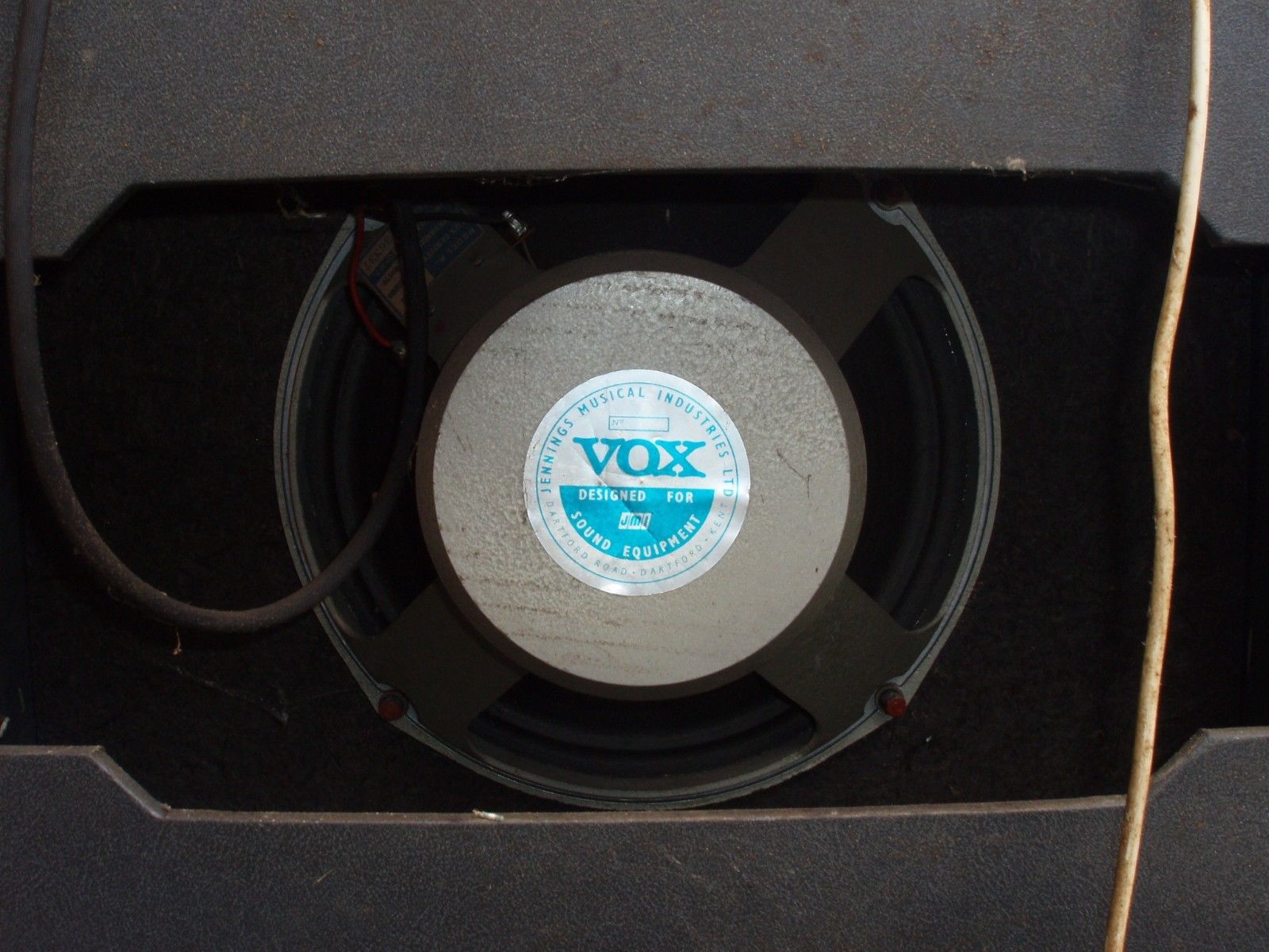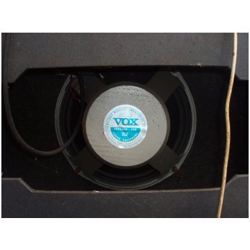 Unusual to see a Domino Bass speaker with - or at least still with - its Vox label. The speaker cabinet was evidently mounted on screw-in legs at some point.