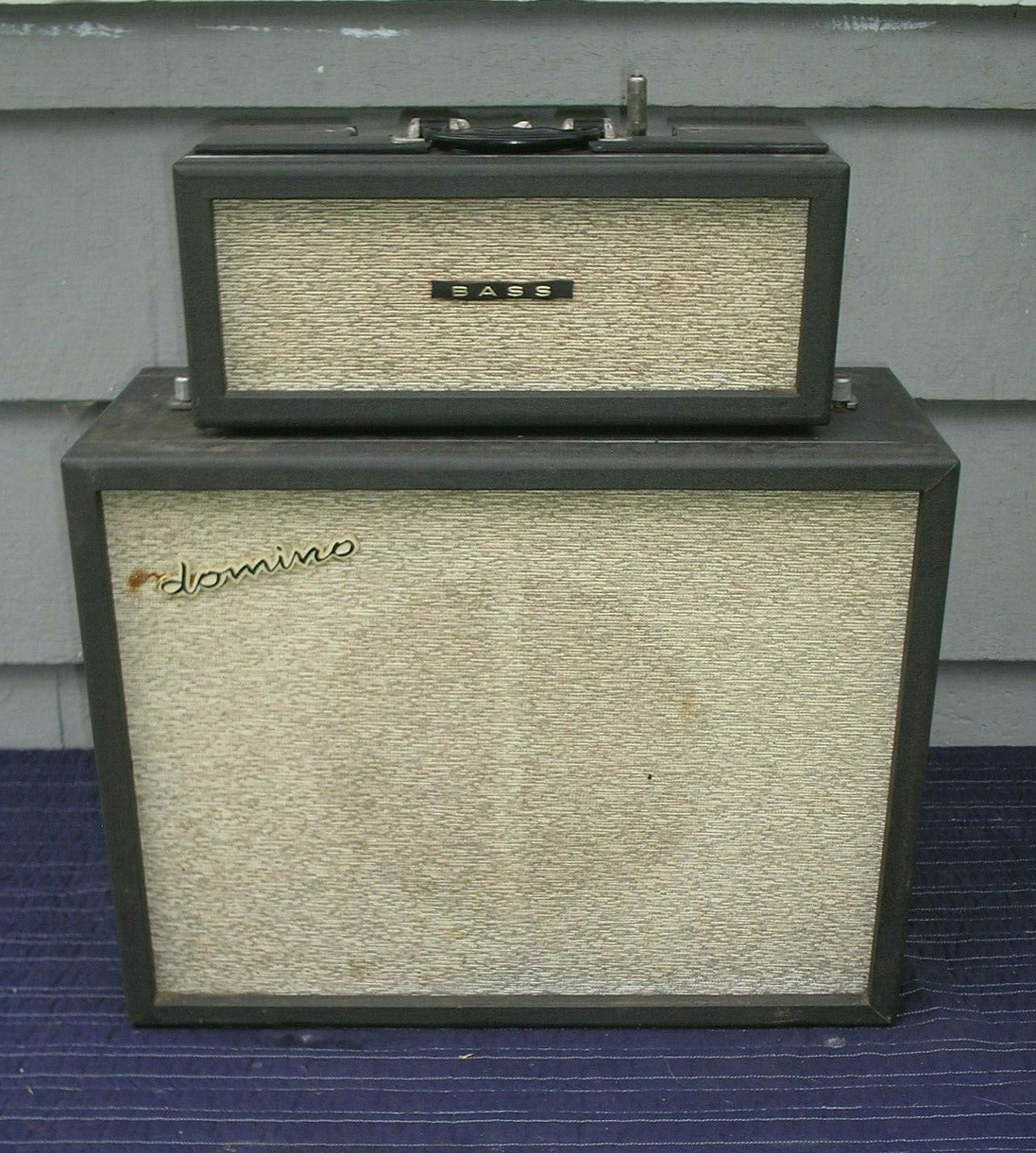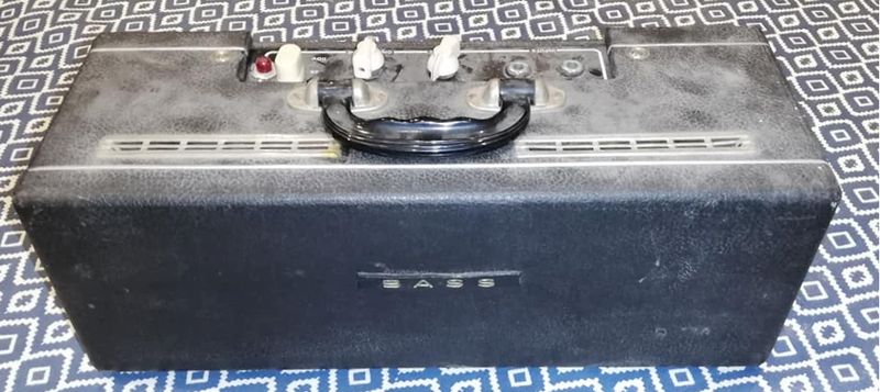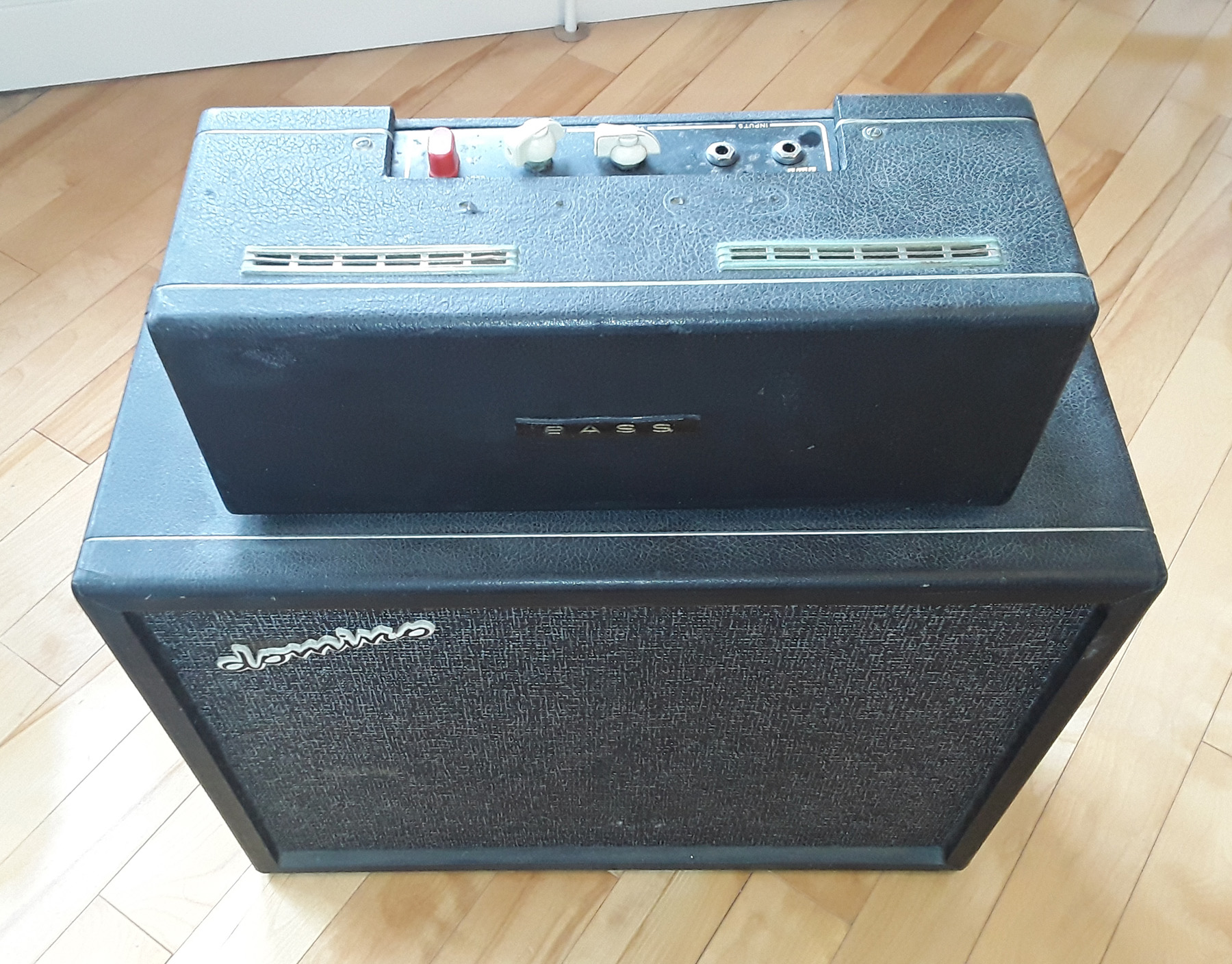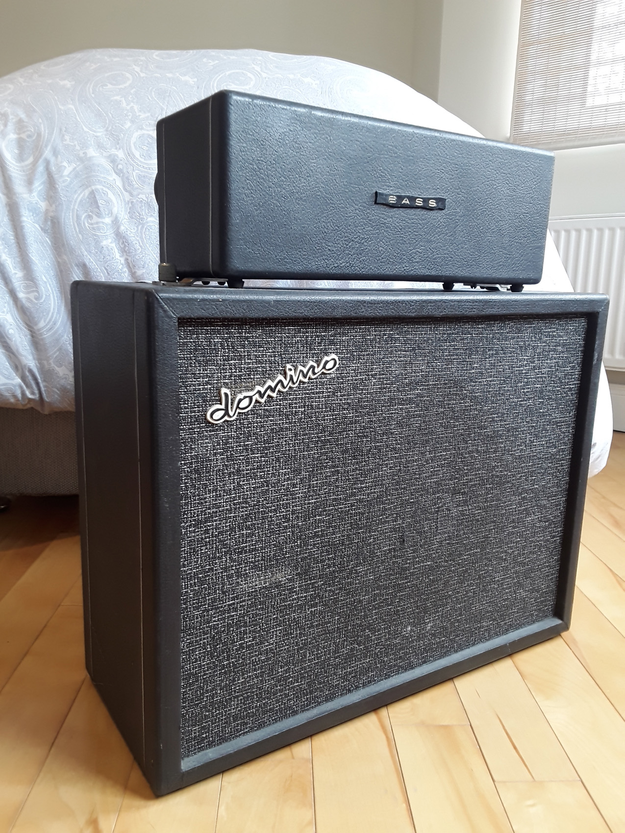 Unusual to see a Domino Bass speaker with - or at least still with - its Vox label. The speaker cabinet was evidently mounted on screw-in legs at some point.