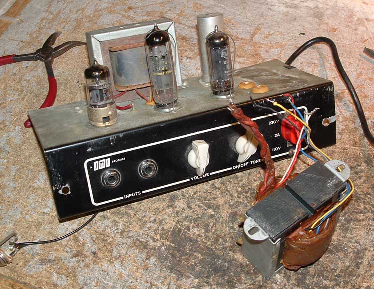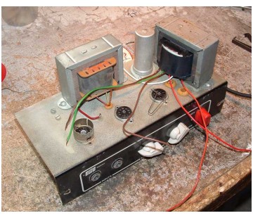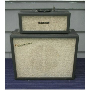 Below, pictures of a cross-section of surviving amps. It seems that all Domino amplifiers shared a single serial number sequence starting at 1000. It is difficult therefore to say how many examples of any particular model were made. But for the Domino Bass around 3000 seems likely. The plates of the Bass were normally stamped with a "B".