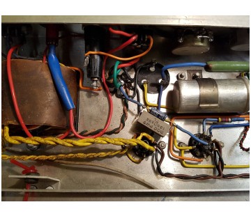 Below, a detail from Domino Super Reverb serial number 2509 to show the 1K wirewound resistor and the intricacy of the Westrex wiring scheme: