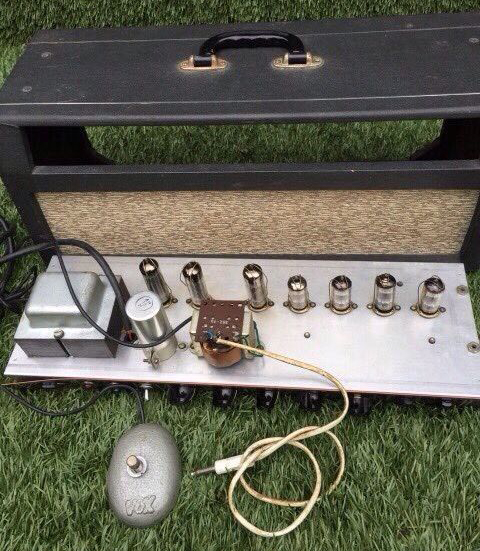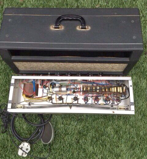In many respects the design of the Super Reverb owed more to Fender than existing Vox models - front-facing controls, a long chassis with transformers and valves on top (or rather hanging below when the chassis was mounted in its cabinet), and so on - more on these aspects below. That its circuit had been borrowed from Ampeg is one of those high ironies.