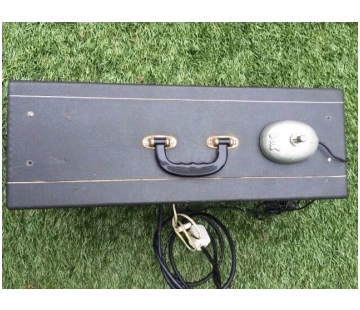 A superb set (amplifier section and speaker cabinet). As in the case of the amps below, heavy mid grey vinyl, flecked grey/white cloth. Thanks to James for info and pics. Further details can be found on this page.