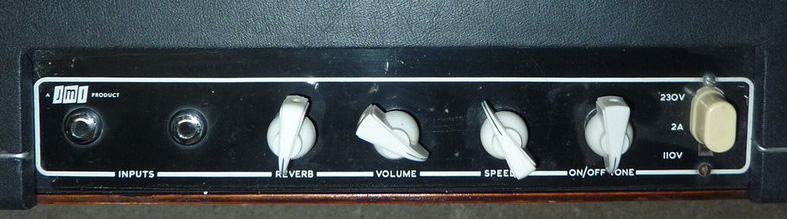 Four controls were provided: Reverb, Volume, Vibrato Speed, and combined Tone and On/Off. Although no example has come to light so far of this new-style Domino Reverb, its control panel will probably have looked like the example below (on a relatively early Domino Reverb combo).