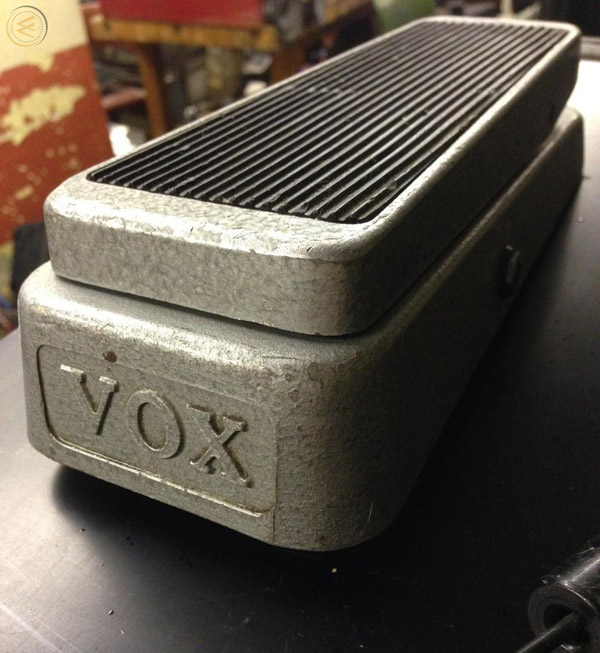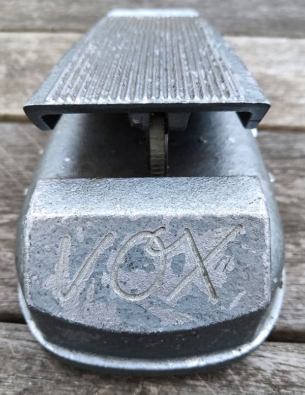 At some point in 1964, JMI commissioned a special casting - with the VOX logo at front - of a type of pedal that Schaller had been producing since the late 1950s. Various other companies had done the same: Dynacord and Kent, for instance. At least three castings were made for JMI, in chronological order: (1) VOX in cursive script with a loop on the "X"; (2) a plain cursive logo; (3) "VOX" in block script. Examples of the three types can be seen below.